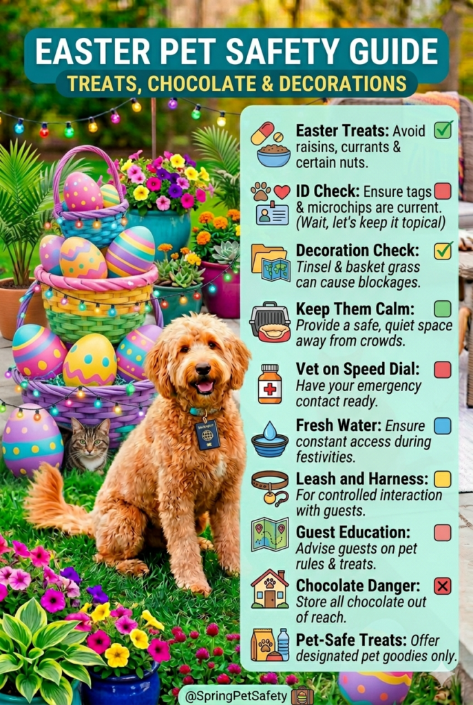 Easter pet safety guide planning can help families enjoy holiday gatherings without creating avoidable risks for dogs and cats. Easter often brings chocolate, candy wrappers, table food, artificial grass, ribbons, flowers, and decorations into areas where pets can easily explore. Curious noses and quick paws can turn a cheerful celebration into an emergency if simple precautions are missed. That is why a clear home routine matters during seasonal events.